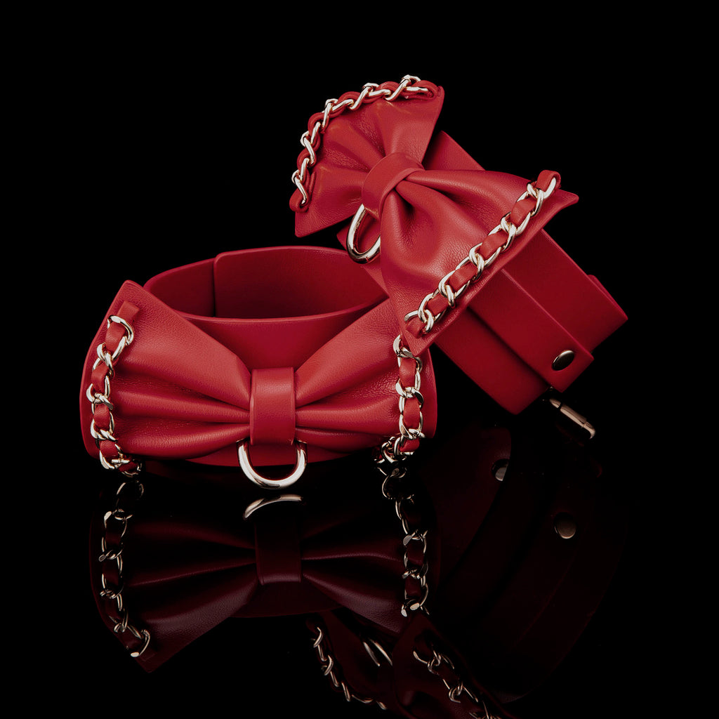 Willkommen in der Welt der exquisiten Sinnlichkeit mit dem roten Bondage-Set „IN HER 31“. Dieses elegante und luxuriöse Set umfasst Hand- und Fußfesseln, ein dazugehöriges Halsband, eine Augenbinde, eine Fesselkette, einen Karabiner und eine Leine, alle mit Nieten und Schnallen höchster Qualität, um 100 % Kontrolle während Ihres Galaabends zu gewährleisten ... Dieses Bondage Das Kit besteht aus geschmeidigem, hochwertigem veganem Leder und ist mit goldenen Details verziert, um Ihre Sinne zu wecken. Alle Elemente sind für eine perfekte Passform verstellbar. Dabei handelt es sich nicht nur um Accessoires; Sie sind eine Einladung in die Welt der Lust, und hier werden Fantasien offenbart. Erfüllen Sie Ihre intimen Fantasien, indem Sie stilvoll in grenzenlose Leidenschaft und Verlangen eintauchen.